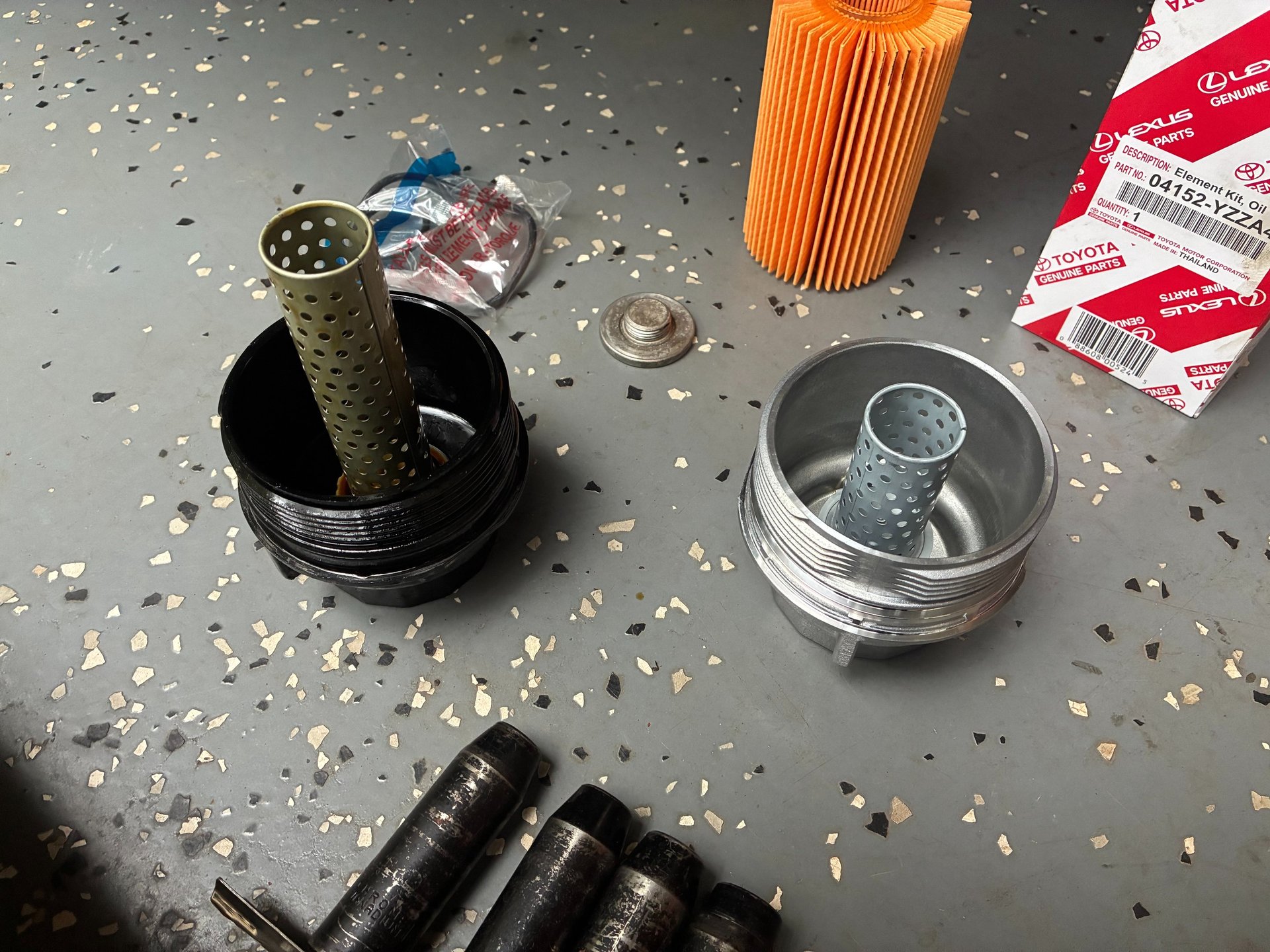 Reinstall the gaskets on the filter housing that come with the new Toyota filter.