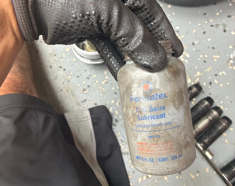 Now that the center tube is attached I decided to put the tiniest amount of antiseize on the threads. This is not something that is needed but I wanted to make sure that I wasn't going to get surprised the next time this comes off. Somehow as soon as you open the bottle of antiseize you'll just end up finding silver antiseize on everything but a small dab can go around the bottom of the threads of the filter housing. Do not put on a huge coat the and try to avoid going above the top of the threads with anti seize a little bit will go a long way.
