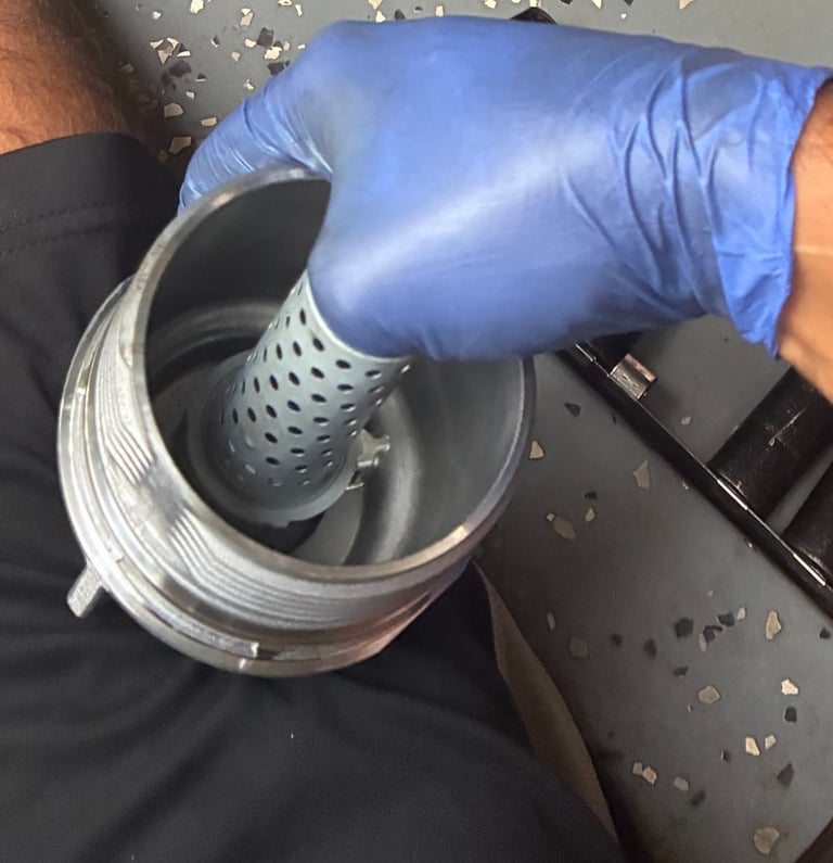 Changing out the plastic crack prone filter for a metal filter from a Toyota Avalon!