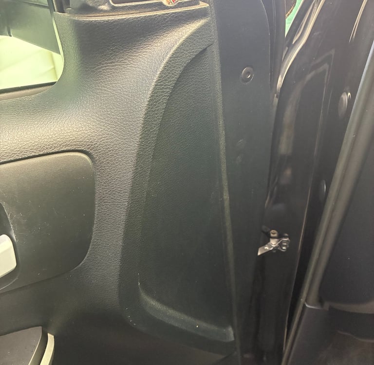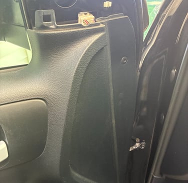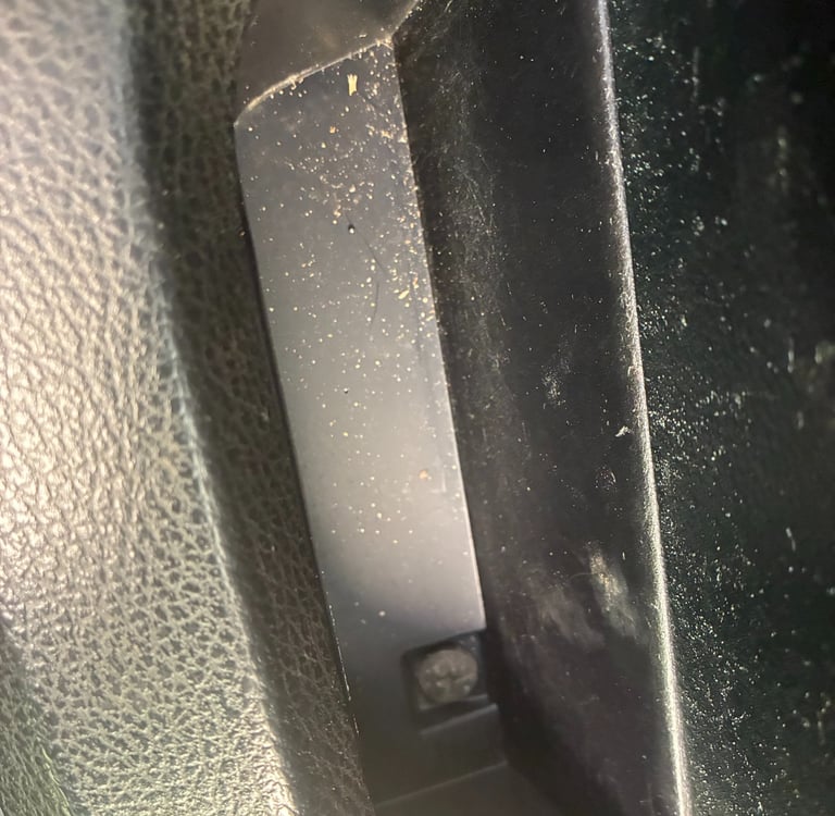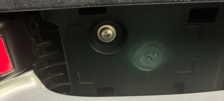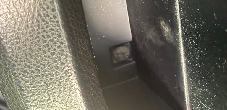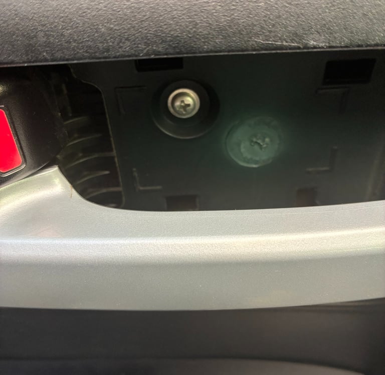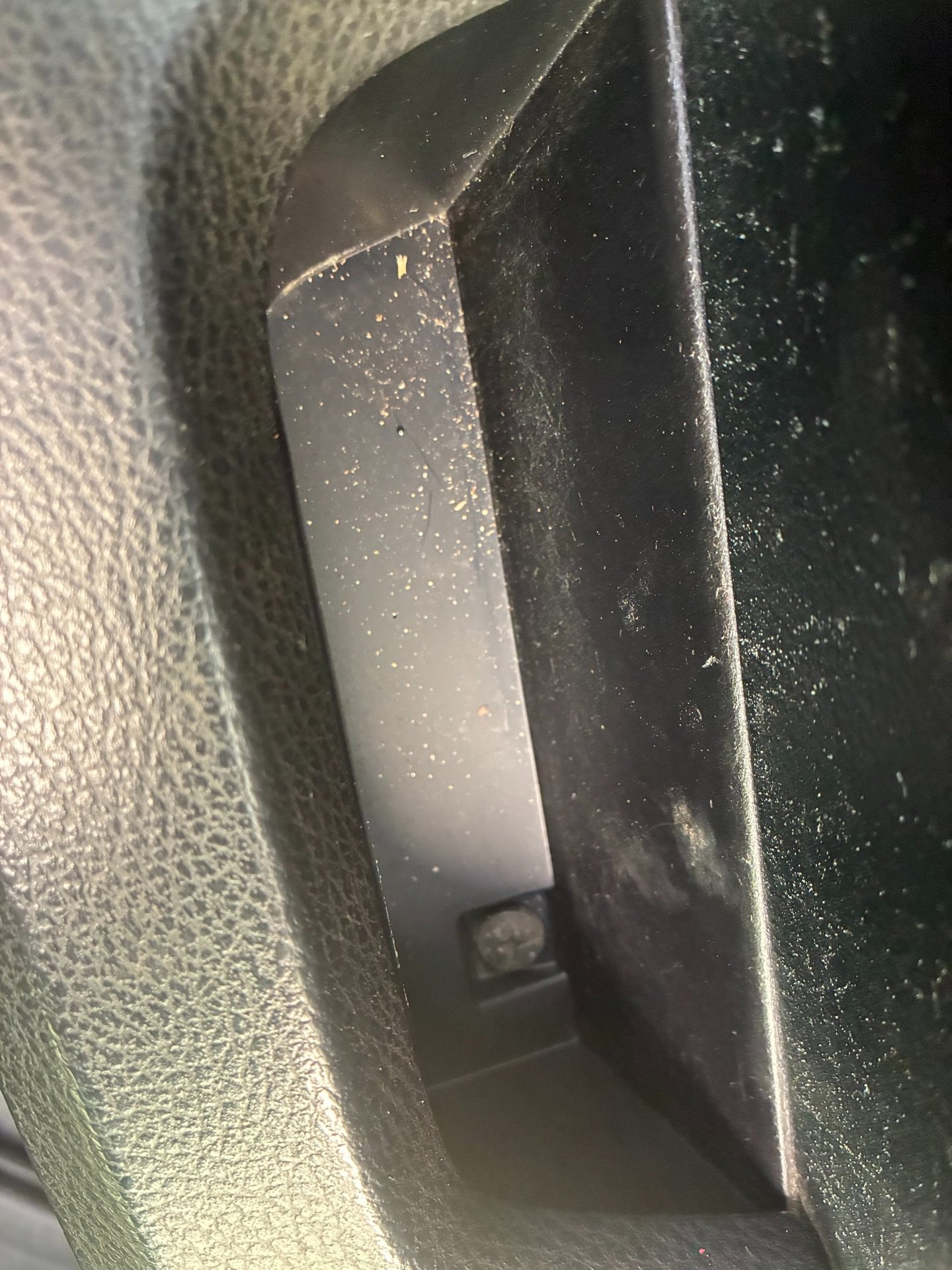 Step 4: Unfortunately the door panel will have to be removed to access the other 2 bolts. Push in the center of the clip pictured below.