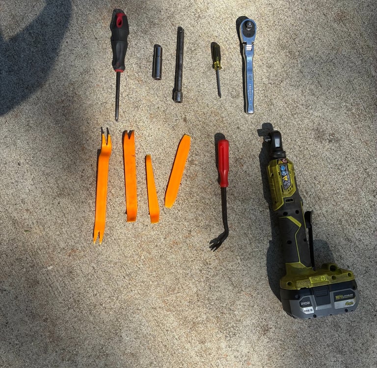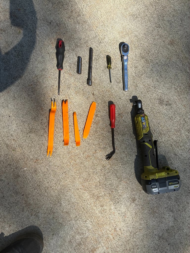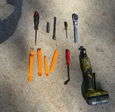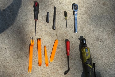Step 1: Take a look at both the old and new mirrors, and get thrilled about all the visibility you will have and the capability to see what's coming up next to you. Below is all the tools you will need to start this the top row being mandatory. I purchased a interior panel kit online to make pulling the panels off way easier. Amazon Affiliate Link