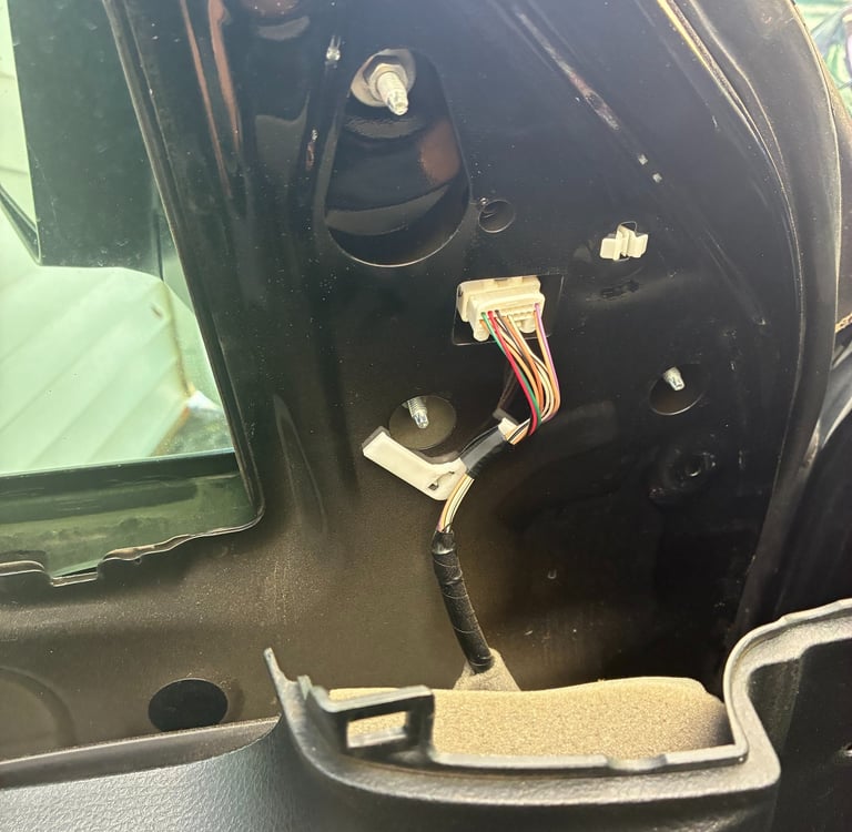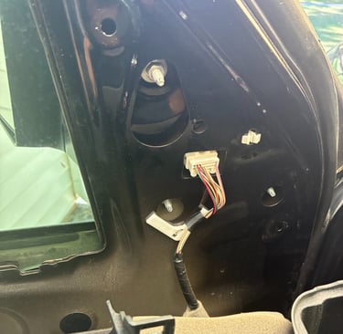 Step 9: Once the door panel comes off the other 10mm bolts and connector is exposed.